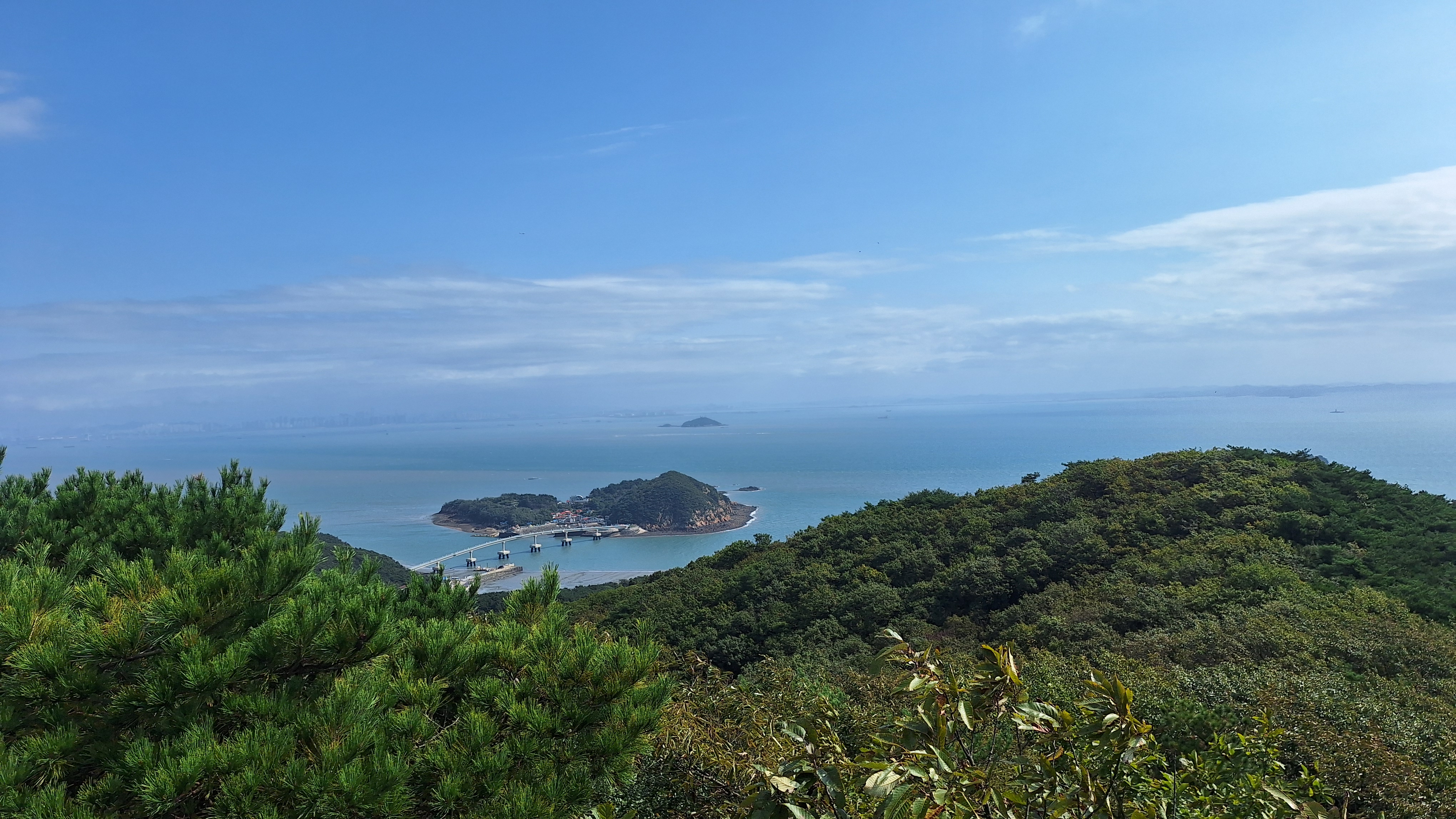 정상 전망대에서 반대방향으로 조금 걸어서 가야 할 소무의도를 담아보고 다시 정상으로 돌아와 광명항으로 향합니다.