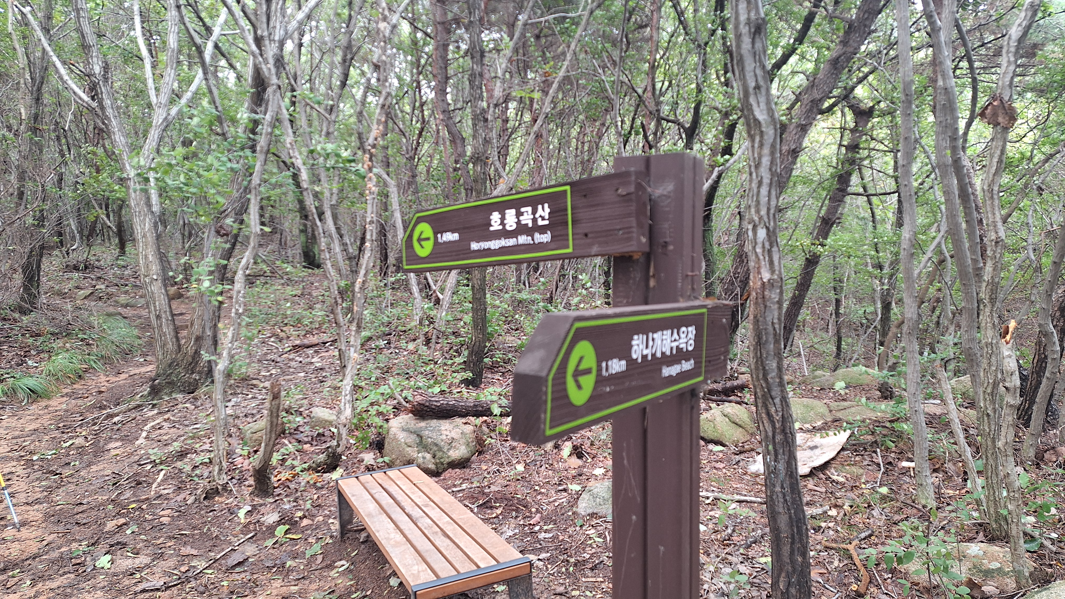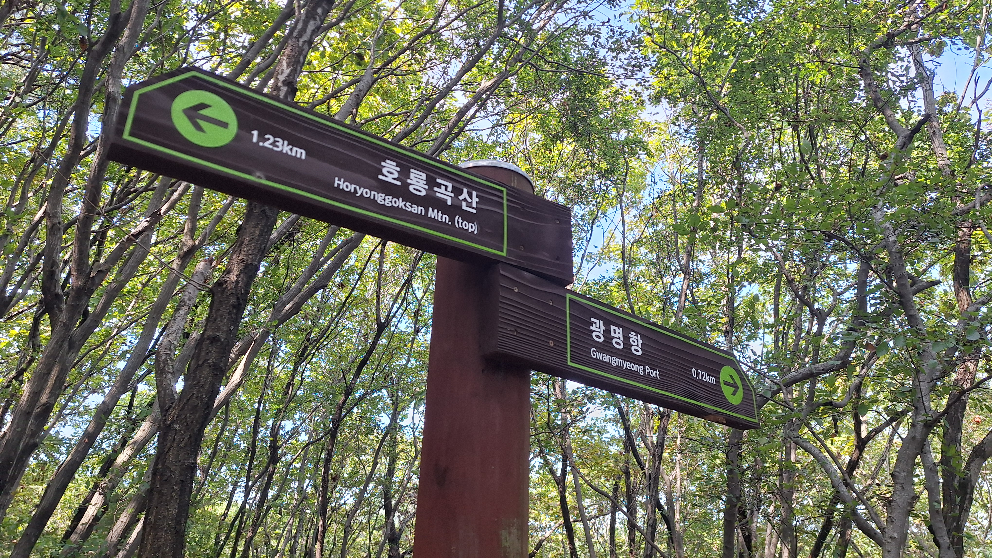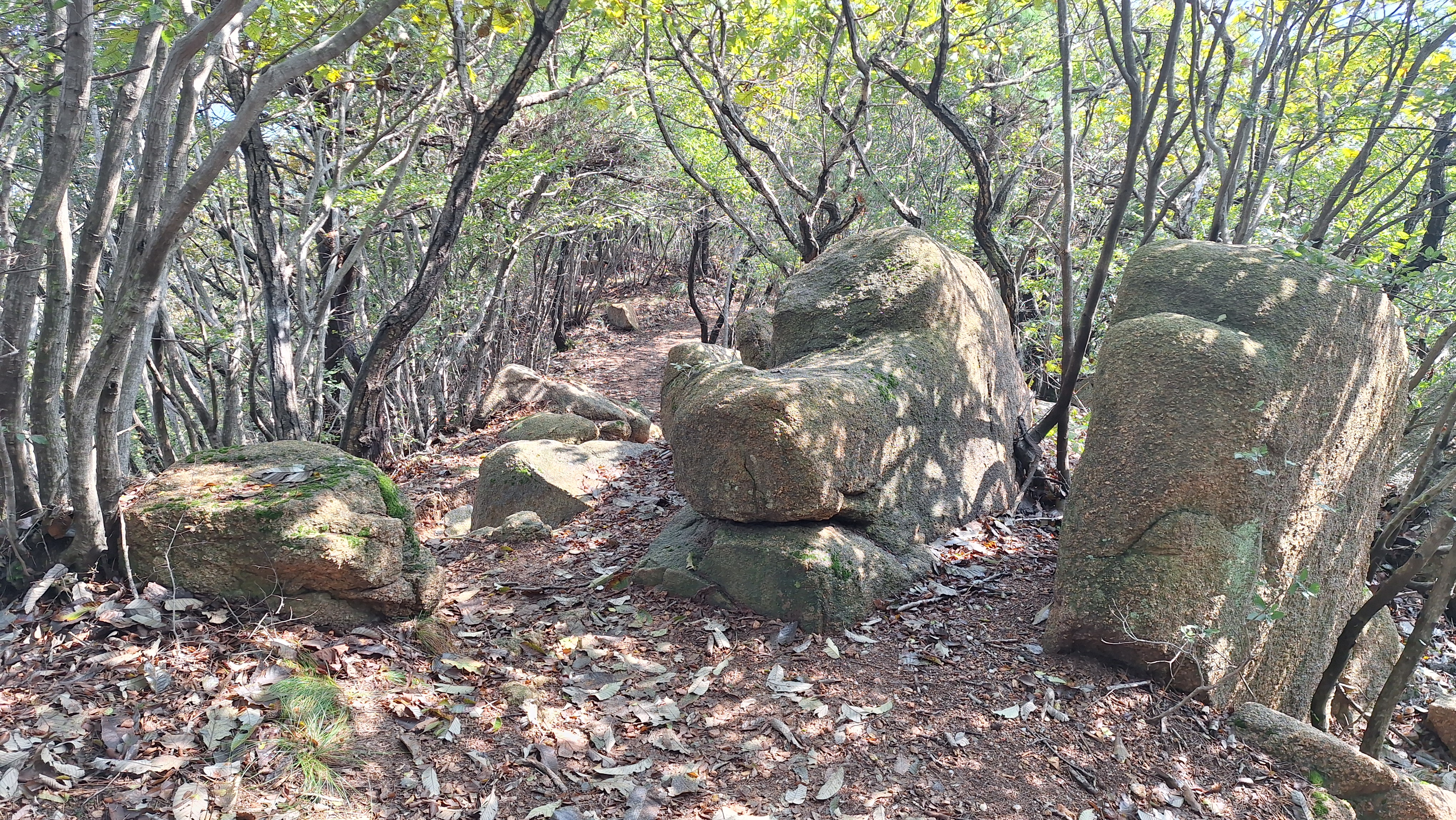 부처바위 전망바위에서 2분 정도 오르면 삼거리에서 호룡곡산 정상을 왕복하고 광명항으로 향합니다.