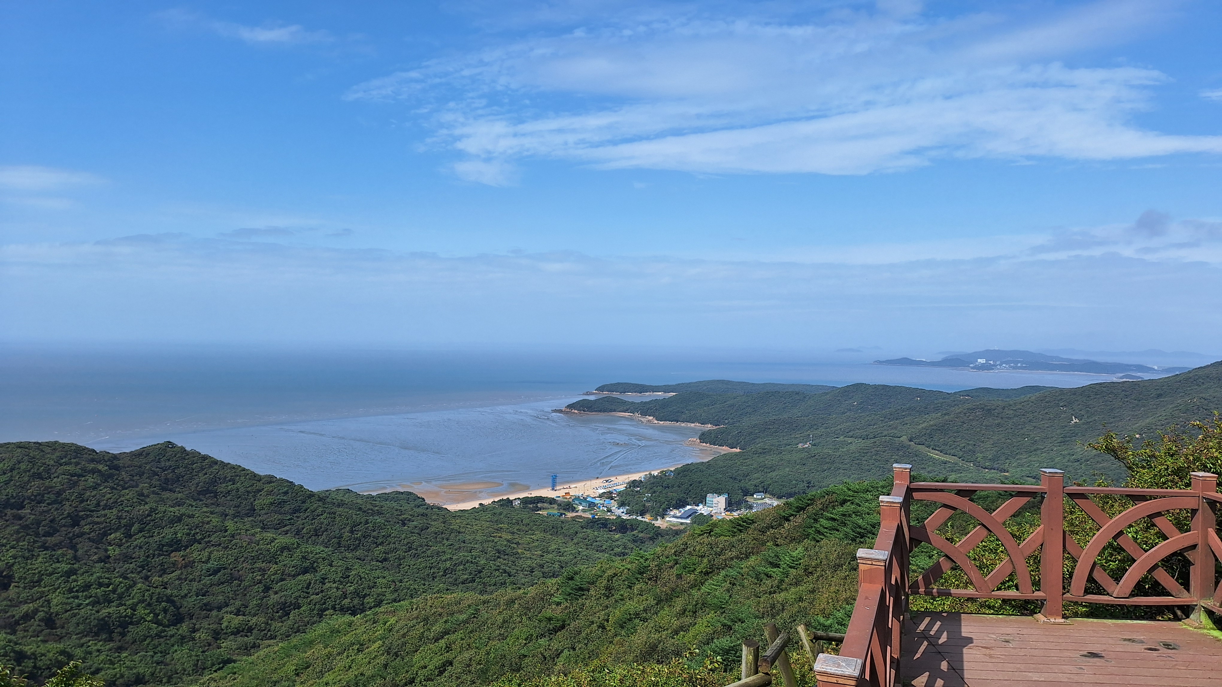 소무의도 인도교를 건너서 바로 앞으로 데크를 따라 10분 정도 오르면 안산 정상에 있는 전망대에 도착하게 됩니다.