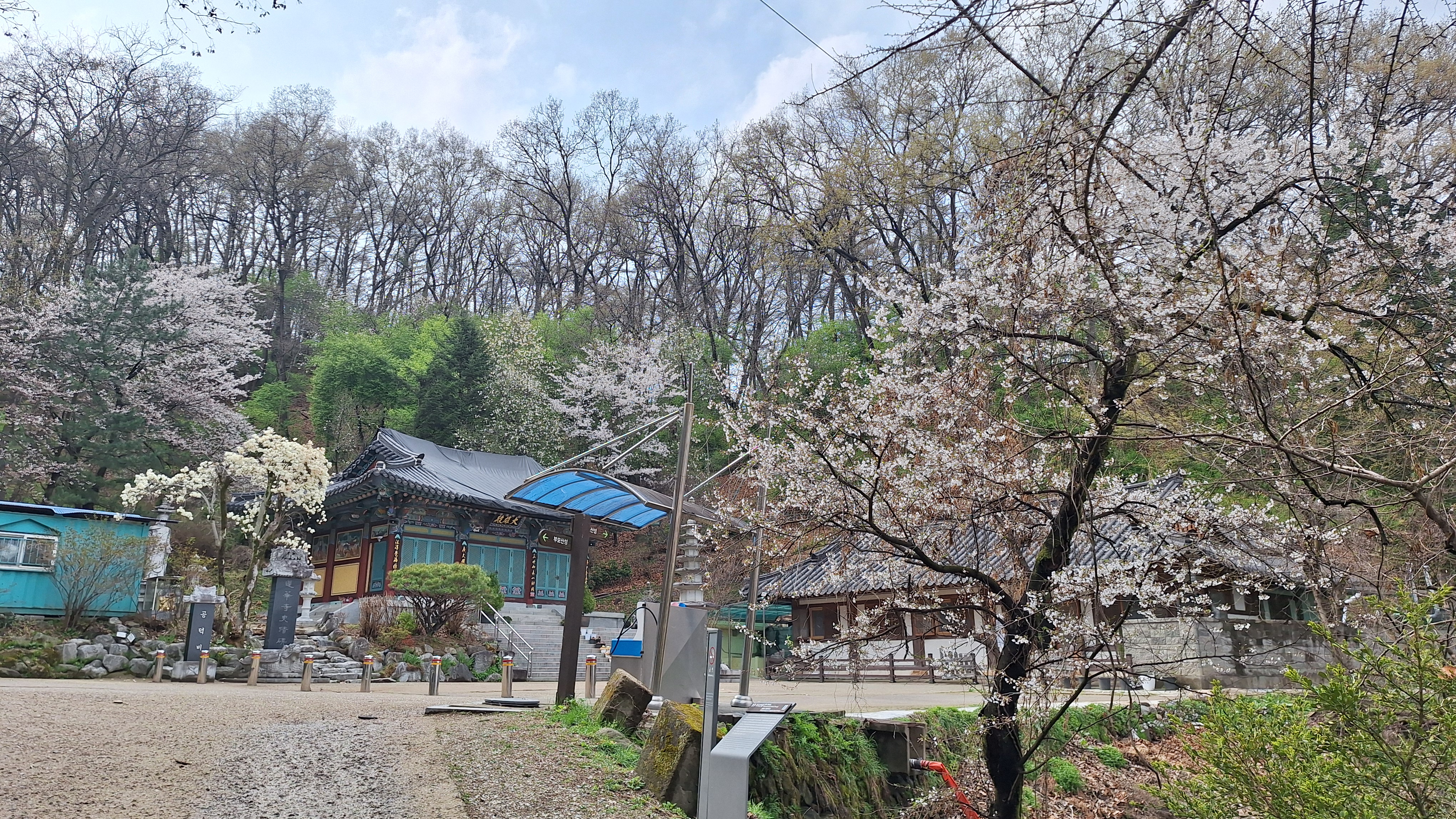 연화사 주변으로는 잎보다 꽃이 먼저 피는 왕벚나무 꽃이 화사함을 보여줍니다.