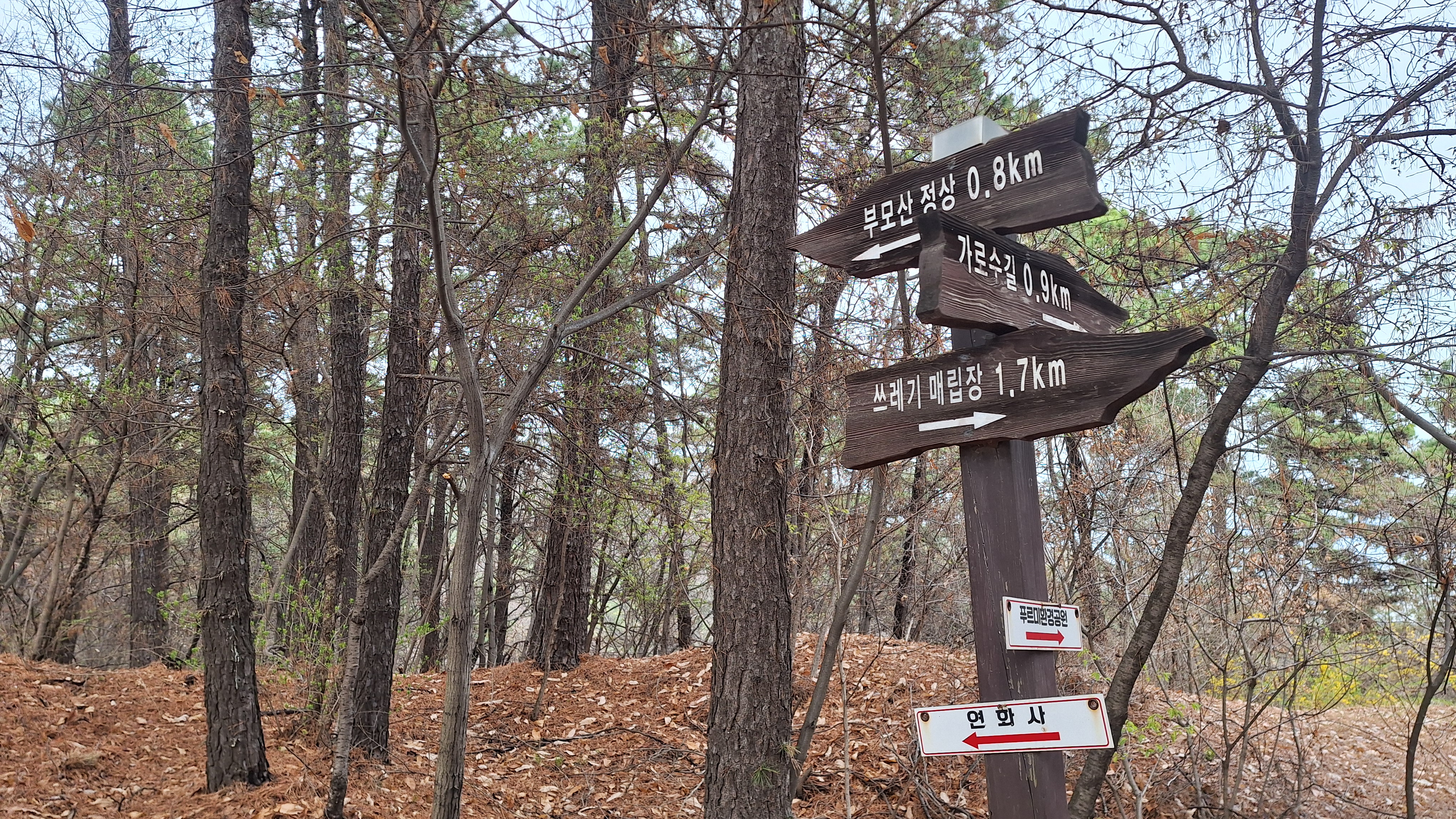 정상과 모유정을 돌아보고 정문에서 우측으로 향합니다.(직진해도 연화사로 향합니다)
